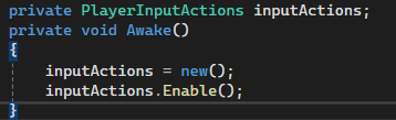 Create a new object of type PlayerInputActions (the generated class from the input actions) in Awake.