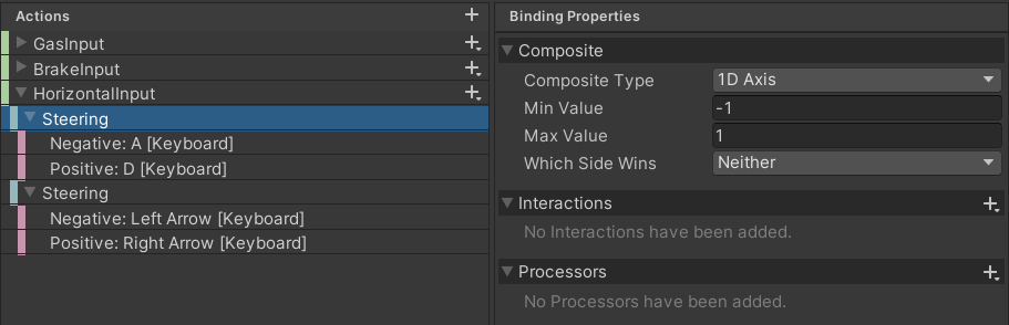 Create new action map for the steering input. Add Positive/Negative binding for the WASD controls